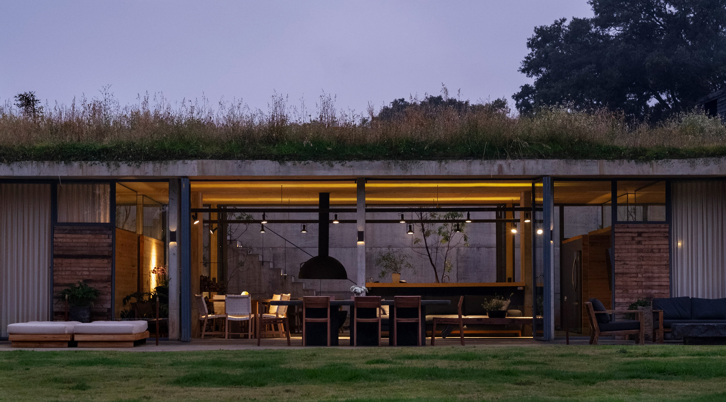 این بنا در مکانی غیر معمول در بین جنگلهای آووکادو ساخته شده است. استراحتگاهی برای مسافرانی که با هواپیما به این جغرافیا آمدهاند. کانسپت اصلی این پروژه ساخت خانهای در جنگل بود اما خواسته کارفرما دیدی دست نخورده به مزرعه آووکادو بود. پس به این ترتیب باید خانه درون زمین دفن یشد. اما پشت خانه با پلانی که به صورت ذوزنقه است همسطح زمین قرار گرفته است. قسمت جلویی خانه با پلکانی بیرونی به سطح زمین در جنوب خانه میرسد. معمار با توجه به علاقه کارفرما نمای پنجم ساختمان را نیز طراحی کرده است. سقف پوشیده از گیاهان بوده و نورگیرهایی خطی بر روی آن تعبیه شده است.