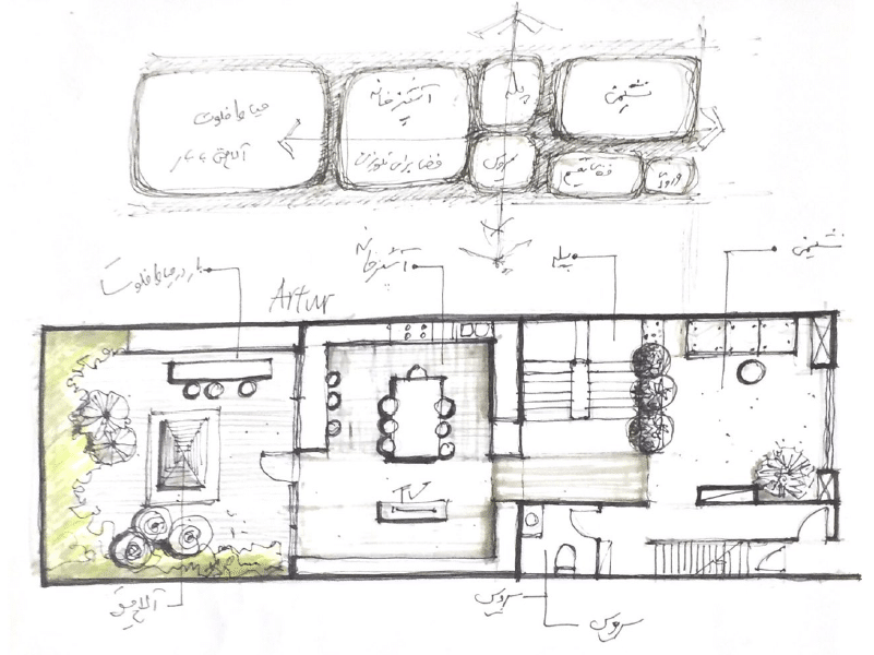 با توجه به پلان حاضر دکتر تاراز با کانسپت‌های اولیه این ویلا، ویلایی را در زمینی محدود اتود زده است. شما سازندگان محترم و همچنین خانواده‌هایی که قصد ساخت ویلا در زمین‌های محدود را دارند و خواستار ویلاهایی با ایده‌های ناب هستند، می‌توانند برای مشاوره و اطلاعات بیشتر با دفتر معماری تاراز و همکاران تماس حاصل فرمایند.