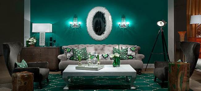 اگر می خواهید سراسر دکوراسیون خانه را با رنگ فیروزه ای شکل دهید ، فراموش نکنید بهتر است طرح و نقش های کمتری را وارد دکوراسیون سازید. عناصر بزرگ و وسیع چون پرده ها ،کاناپه ها و … باید ساده باشند و طرح و نقش ها به مقدار کم به وسیله وسایل کوچکتر وارد دکوراسیون شوند .