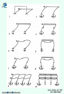 ۷- بار جانبی ، تمام اتصالات مفصلی ، نقطه عطف در تیر و ستون