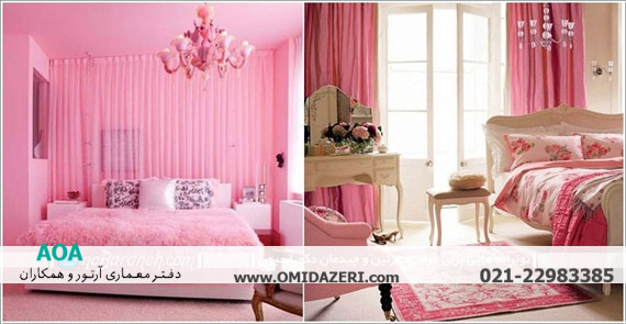 ۸- صورتی : این رنگ آفریده شده برای بانوان و خانم ها و در واقع یک رنگ کاملا رمانتیک و احساسی است. استفاده جزیی از آن در دکوراسیون اتاق خواب می تواند مفید باشد ولی اگر می خواهید همسرتان را برای همیشه از اتاق خواب فراری بدهید حتما از این رنگ بیش از اندازه استفاده کنید. به قول معروف این رنگ روی مغز آقایان قدم رو می رود.