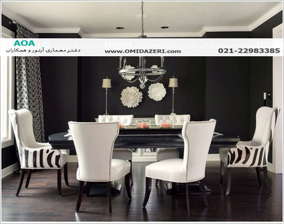 ۷- مشکی : این رنگ اگر به تنهایی استفاده شود دکوراسیون خانه را به عزاکده تبدیل می کند ، ولی اگر با رنگ سفید میکس شود می تواند طراحی دکوراسیونی پر زرق و برق و ایده آل را رقم بزند.