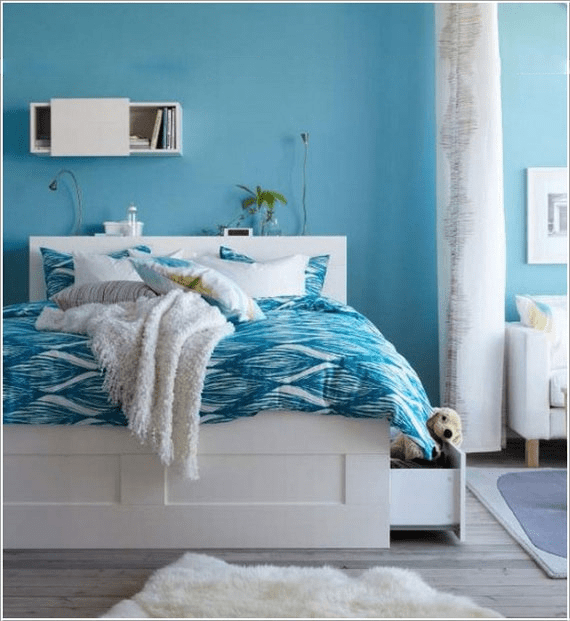 ۳- آبی : این رنگ باعث کاهش ضربان قلب میشود و یک آرامش دوست داشتنی به ساکنین منزل هدیه می دهد. برای استفاده از رنگ آبی چه جایی بهتر از اتاق خواب ؟ البته استفاده از آبی آسمانی و آبی روشن برای آشپزخانه هم می تواند مفید فایده واقع شود. معمولا استفاده از رنگ آبی تیره ، بخاطر یاس و ناامیدی که در آن نهفته است توصیه نمیشود.