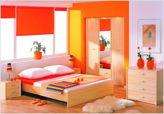 تزیین دکوراسیون داخلی اتاق خواب با رنگ های گگرم و شاد مثل نارنجی