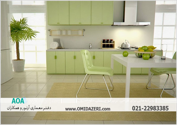 تزیین و طراحی دکوراسیون آشپزخانه با کابینت های سبز روشن