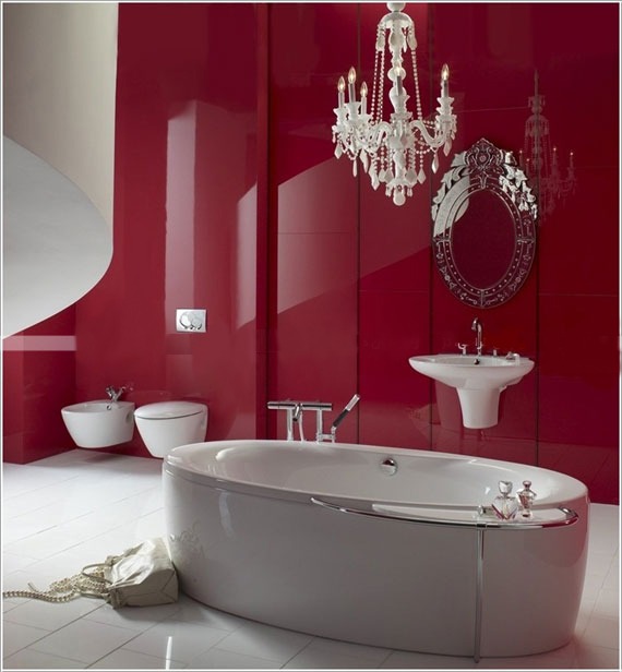 طراحی دکوراسیون داخلی حمام و سرویس بهداشتی با رنگ های زرشکی و سفید
