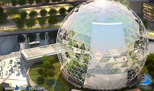به نظر می رسد پلانتاگون در طراحی اولیه گنبد متشکل از سطوح هندسی خود برای این برج عظیم هر دو مورد به عنوان ویترینی از گیاهان و هم رشد گیاهان درون آن را در نظر گرفته است.