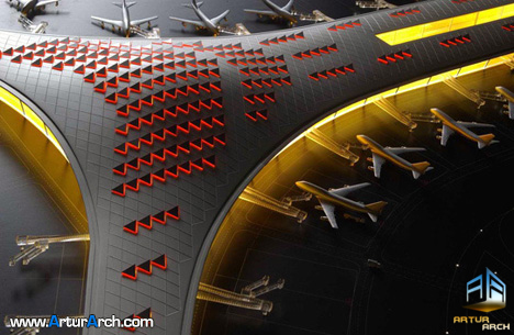 قوسی که در ساختمان ایجاد شده دعوت کنندگی زیبایی را از مسافران انجام می دهد .حفره هایی که در سقف ساختمان ایجاد شده تهویه هوا و عبور نور در طول مدت روز فراهم می کند. عکسهای بیشتری از این پروژه زیبا در ادامه آمده است.