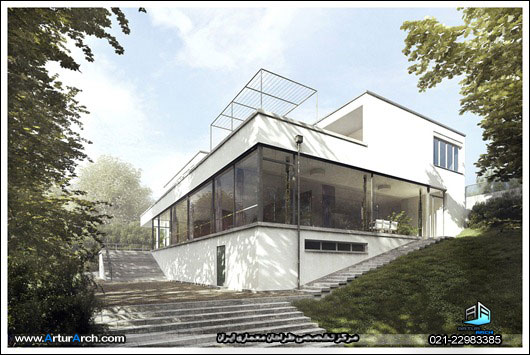 خانه همچون مکعبی است سه طبقه، که دیوارهای آن در طبقات عقب نشینی کردهاند، این عقب نشینی و کنسول شدن کفها نیز در واقع توسط آویختن آنها از تیرهای سقف کنسول شده میسر گردیده است.