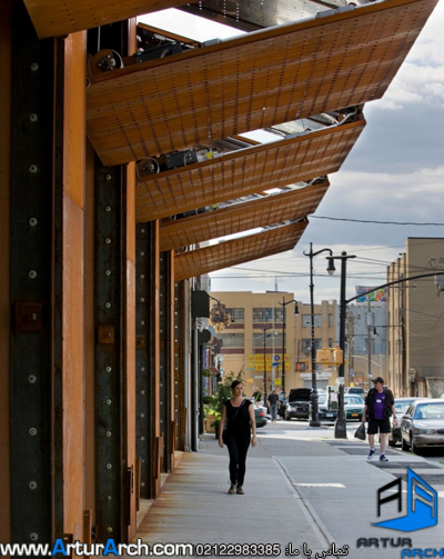 در این پروژه که در کشور غنا می باشد طراح پروژه کوشیده است تا با خلق یک نمای متحرک، به شهر یک جداره ی پویا، سیال ارائه دهد.