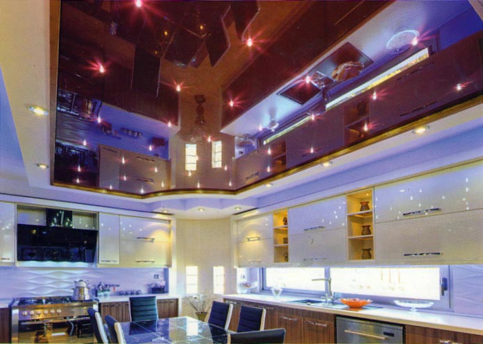استفاده از سقف های کششی به عنوان یک عنصر دکوراتیو تاثیر شگفت آوری ایجاد می کند و فضای جدید ایجاد می کند و نوعی از آن ( براق) افکتی شیشه ای را به رنگ دلخواه ایجاد کرده و با حالت آیینه ای خود فضای کوچک را بزرگتر جلوه میدهد.