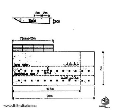 مقاطع ارائه شده در شکل کف استخرهای چند منظوره و مقدار شیب مجاز آن را که کمتر از ۷ درصد در طول استخر می باشد نشان می¬دهد.