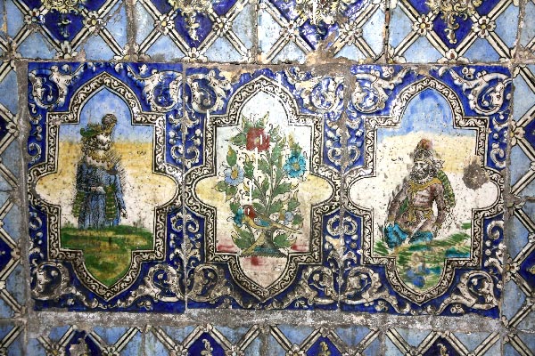 از کارگاه بیرون می آییم و در خیابان به راه می افتیم. کاشیکاری و آجر نماهای بسیاری، بر در و دیوار ساختمانها و مغازها، هنوز دستنخورده، برجای ماندهاند. در یکی از پاساژها بهنام «چهلستون» میتوان هنر کاشیکاری را به روشنی دید. دو راهپله، دسترسی به طبقه بالا را شدنی کرده است. در راهپلهها، کاشیکاریهایی با چهرهی مردان و زنانی دیده میشود که نام هرکدام از آنها، بر روی کاشی نوشته شده است.