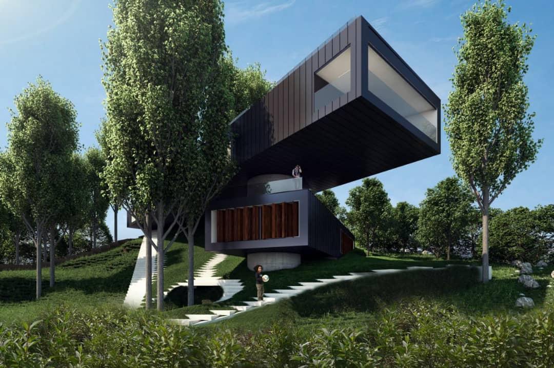 ویلای طالقان در بستری سبز و پویا شکل گرفت. ایجاد نظرگاه در مجموعه برای استفاده از طبیعت پیرامون از اهداف طراحی است. طبقات بر اساس شکل بستر و احترام به سایت شکل گرفت و سبب ایجاد فضاهای پویا همانند کنسول های معلق و بام های سبز گردید. در این سایت از انرژی خورشیدی برای تامین سرمایش و گرمایش استفاده شده است.