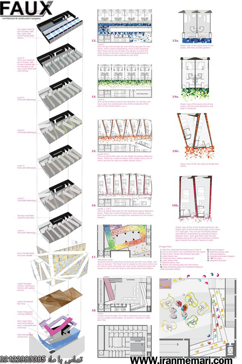 ۷- ترجمه عین به عین [۸]: اصطلاحی است که ادوارد لارابی بارنز برای توصیف ویژگی ارتباط واضح بین اثر و ایده اصلی آن استفاده کرده است: بکارگیری دیاگرام یا مفهومی که به سادگی و روشنی تبدیل به طرحی در پروژه شود. طبق اندیشه وی، کانسپت معماری باید به راحتی کشیدن آن روی یک دستمال قابل توضیح باشد. و متقابلا اصل دیاگرام کشیده شده طرح روی دستمال باید عینا در بنای تمام شده قابل تشخیص و مشاهده باشد.
