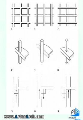 نوع سطح مشترکی که ستون و تیر در نما ایجاد می کنند از نظر معماری و سازه ای دارای اهمیت می باشد.در مورد اتصالات خمشی از نظر سازه ای بهترین کار قاب کردن تیر به صورت مستقیم در درون ستون است. انتقال ممان بدون پیچش در این حالت به صورت بهینه انجام می گیرد. اگر این کار در نما مشهود باشد می تواند به زیبایی یک قاب خمشی را نشان بدهد. ممکن است تیر ها پشت ستون ها قرار بگیرند تا حالت عمودی را الغا کنند و یا در جلوی ستون قرار بگیرند و حال افقی را نشان دهند با این حال هر دو حالت به علت نامتقارن بودن در تیر پیچش و در ستون خمش ایجاد می کنند.