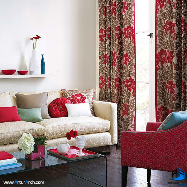دوخت پرده هاى دولایه از پارچه هاى رنگین به اتاق هایى که طراحى و دکوراسیون رنگینى دارند زیبایى بیشترى مى بخشد. این پرده ها را به صورتى جمع کنید که لایه زیرین نیز دیده شود.