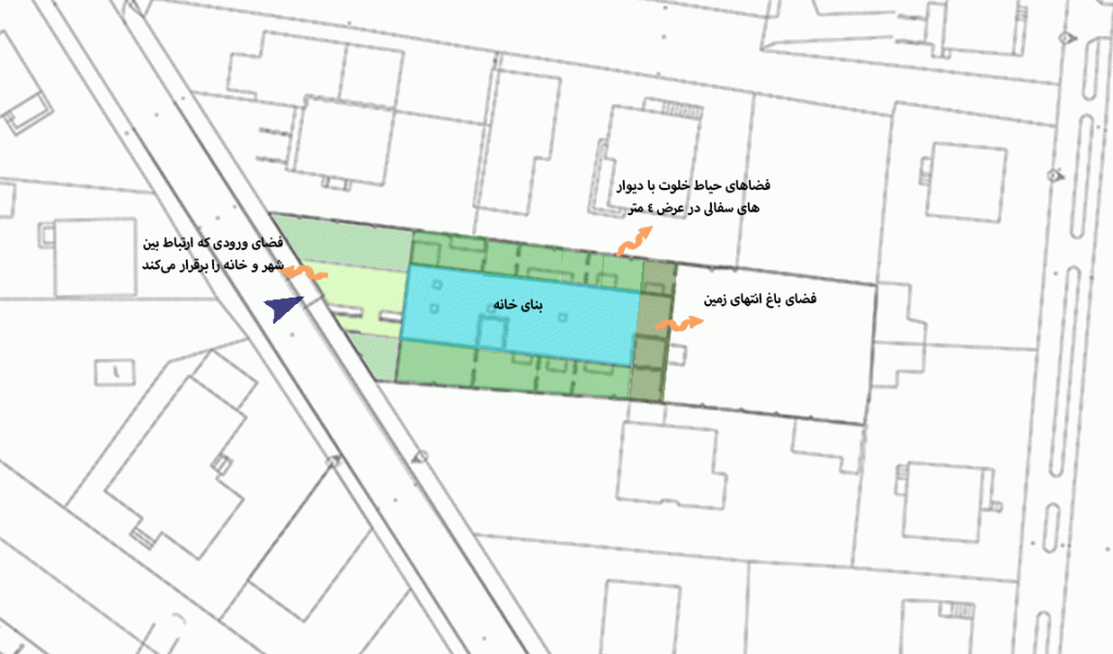 از طرفی پوسته بتنی که تا ارتفاع ۳.۳ متر بالا رفته و سقف بنا را شامل میشود، به شکلی که این پوسته با فرم خاص خود میتواند ارتباط خانه را با محیط اطراف خود یعنی فضاهای داخلی و باغ و حیاطهای خلوت حفظ کند. نمای جنوبی بنا با داشتن دیوارههای متخلخل و روزنههای بزرگ بر روی آن در قسمتهایی از دیوار وظیفه نور رسانی و جمعآوری نور را بر عهده دارد. از طرفی برای داشتن باغهای زمستانی و تابستانی و حفظ شرایط متعادل محیطی این روزنهها لعابدار شده و محیط بهینهتری را در مصرف انرژی ایجاد میکند.بنا با حداکثر عرض ۹ متر با نماهای بزرگ طوری طراحی شده که پنجرهها در نمای شمالی و جنوبی شکل گرفتهاند و هیچکدام از بازشوهای نورگیر در دیوارههای شرقی و غربی که کنترل نور سختتر است جای نگرفتهاند.
